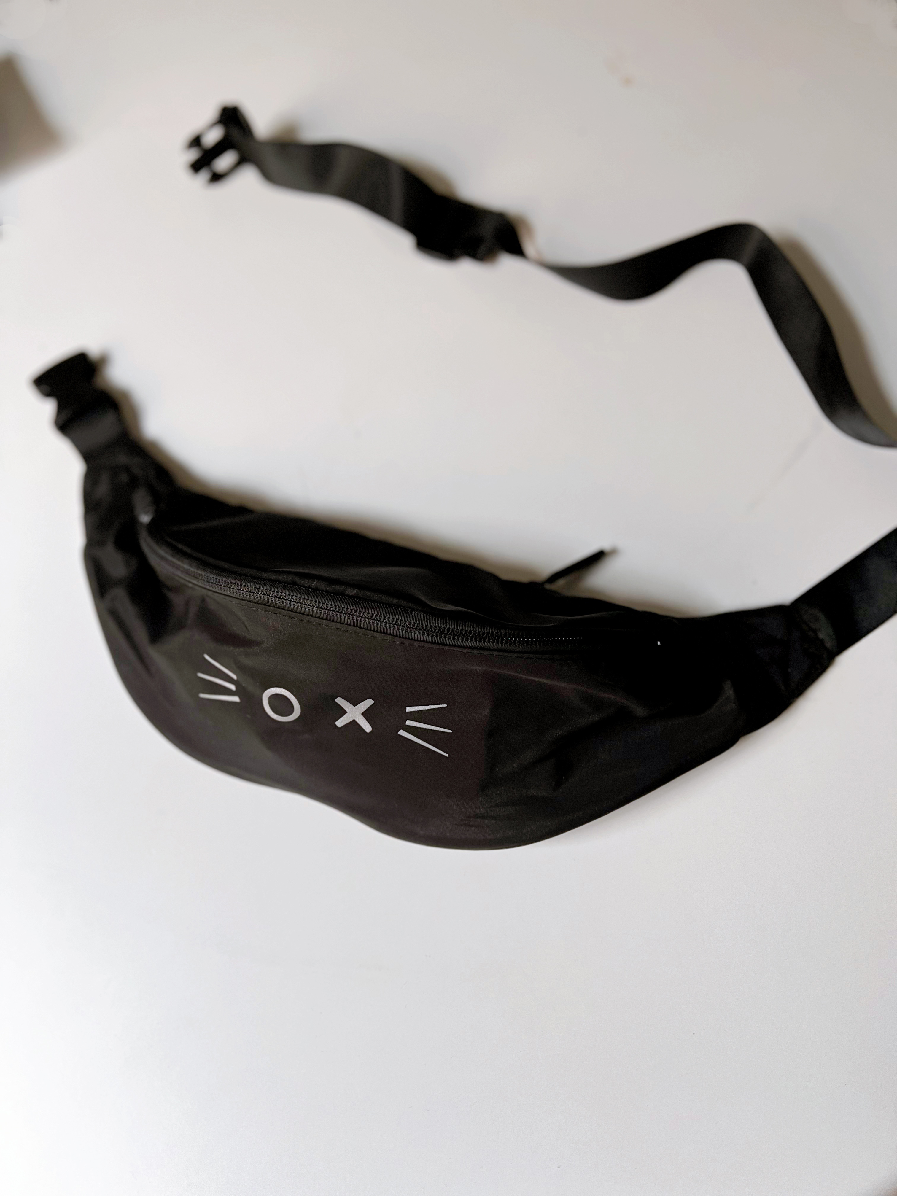 Praktische Hüfttasche aus Polyester mit Reissverschluss vorne und hinten. Partytauglich, wasserabweisend und schick. Mit Katerface-Druck wie abgebildet. Ein paar Sticker und ein Clipper gibt es gratis mit dazu.